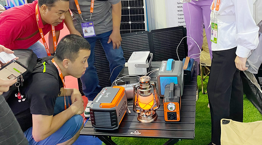露营的时候想看电影?投影功能安排!想听音乐?AI智能音箱安排!担心电量不够?便携式光伏太阳能板安排!你和你的小伙伴们想同时充电?10台设备同时支持用电安排!这就是本届东博会上永利304科技推出的重磅新品——AI便携式储能电源PH2380。